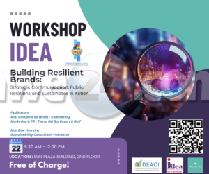 ORANJESTAD – Departamento di Asuntonan Economico, Comercio y Industria mediante su unit di Iniciativa pa Desaroyo pa Empresa Arubano (IDEA), ta invita tur persona cu ta den proceso pa habri un negoshi of cu ya tin un negoshi, pa asisti na IDEA su workshop di ‘Building Resilient Brands: Strategic Communication, Public Relations and Sustainable in Action’dia 22 di november venidero.