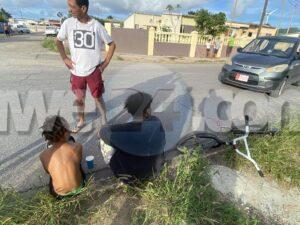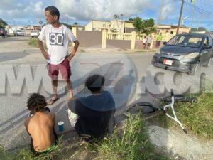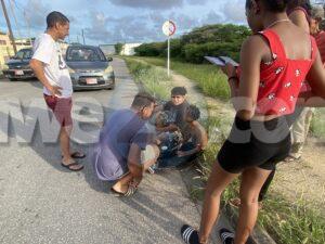 Diaranzon atardi a drenta informe di un accidente cu hende herida na Pindastraat, mesora a dirigi tanto polis como ambulams na e sitio. Na yegada di e patruya a bin compronde cu aki ta trata di un accidente unda un auto Hyundai i10 a haye confronta cu un mucha chikito riba bicicleta a sali for di un crusada y a purba kita p’e pero no a logra y a dal e mucha . E mucha a ricibi basta sla na su cachete y barica y tabata keha di dolor di barica. Na yegada di e ambulans nan a atende e mucha pa e heridanan cu e tabata tin.