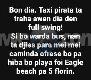Diaranson merdia nos a ricibi un video di taxi piratanan transportando hendenan ilegalmente. E hendenan aki mester compronde bon cu pa haci esey bo tin mester di un permiso.