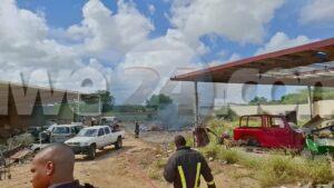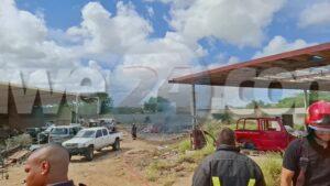 Diahuebs merdia durante di cu tabata tin candela na W.E.B.N.V. na Balashi na mesun momento tabata tin un otro candela na Santa Marta, mirando cu a manda e unidadnan di Tanki Flip y Oranjestad pa W.E.B. a manda esun di Sanicolas na e sitio. Na yegada di e bomberonan a bin compronde cu aki ta materialnan bieuw di auto tabata na candela. Mesora a cuminsa combati e candela cu tabata basta grandi y a logra paga esaki. Polis tambe a presenta y a atende cu esunnan responsabel pa e candela.
