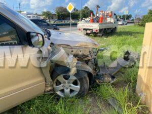 Diabierna mainta a drenta informe di un accidente cu hende herida na e rotonde Ponton riba E.J.”Watty” Vos blvd., mesora a dirigi tanto polis como ambulans na e sitio. Na yegada di e ambulans nan a atende e dama chauffeur mientras polis mes a yega na e sitio y a compronde cu e dama chauffeur biniendo for di pariba y a baha caminda dal palo di lus kibra. Debi na e impacto aunke e airbag a “deploy” e dama chauffeur a reaulta herida. Despues di a controla e dama a transporte a hospital.