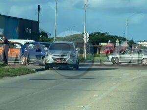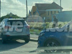 Diadomingo mainta a drenta informe di un accidente ne e rotonde chikito banda di Citgo Sasaki, mesora a dirigi un patruya na e sitio. Na yegada di e patruya a bin compronde cu aki ta trata di un accidente unda e dama chauffeur di un s.u.v. MG no a mira e Hyundai Tucson su dilanti y a bay dal tras di dje. Afortunadamente ningun hende a ressulta herida.