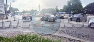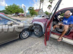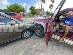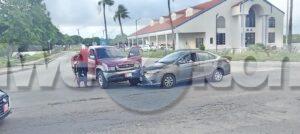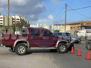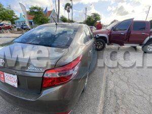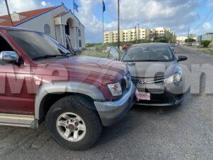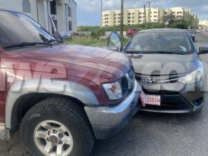 Dialuna mainta a drenta informe di un accidente banda di C.M.B. na Palm Beach, mesora a dirigi un patruya na e sitio. Na yegada di e patruya a bin compronde cu e pick-up Toyota double cab no a para pa duna preferencia na e Toyota Yaris y esaki a bin dal riba dje. Afortunadamente ningun hende a resulta herida.