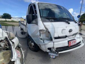 Dialuna merdia a drenta informe di un accidente semi frontal na Prof. Lorentzstraat cu Emmastraat, mesora a dirigi un patruya na e sitio. Na yegada di e patruya a bin compronde cu e chauffeur di e Kia K3000 biniendo di pariba a wak panort un auto ta bini cu no kier para y a keda mira e auto mientras e ta bira pero no a mira e otro auto contrario cu a bin dal riba dje. Aunke e impacto tabata fuerte afortunadamente ningun hende a resulta herida.