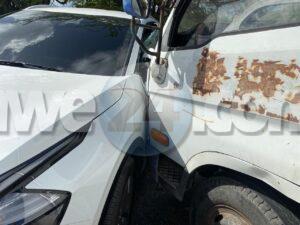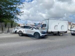 Diaranson merdia a drenta informe di un accidente na Caya G.F. “Betico” Croes. Mesora a dirigi un patruya na e sitio. Na yegada di e patruya a bin compronde cu aki ta trata di un accidente unda un KIA Sportage blanco lo a sali dilanti di un truck y e truck a dal den dje. A pidi presencia di ambulans pasobra e chauffeur di e KIA Sportage a resulta herida. A pidi presencia tambe di e brandweer pa asina e materialenwagen por a habri e porta di e KIA Sportage cu tabata pega.