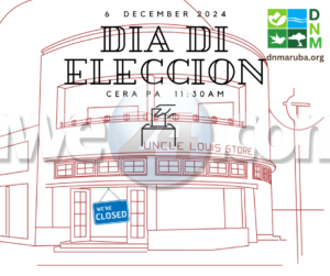 ORANJESTAD – Den cuadro di dia di eleccion nacional, 6 di december, dia cu ta bay eherce e derecho di voto 2024, DNM lo ta cera mita dia desde 11:30 am. Nos oficina na B v/d Veen Zeppenfeldtstraat #7 situa na San Nicolas lo ta cera despues di merdia. Pa cualkier eventualidad por notifica via un mensahe riba nos plataforma di Facebook messenger @dnmaruba. Pa melding di urgencia tocante naturalesa y medio ambiente por haci esaki via KPA of riba aplicacion di Fixi. DNM ta habri bek dialuna 9 di december.