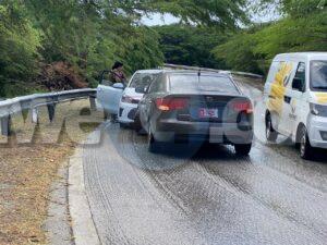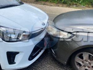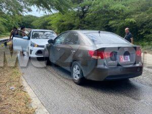 Diahuebs merdia a drenta informe di un accidente na Rooi Manoonchi unda un auto biniendo for di Sero Blanco a slip y a bay dal frontal riba trafico contrario. Afortunadamente ningun hende a resulta herida.