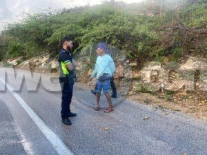 Diadomingo den oranan di mainta a drenta informe di un accidente riba e caminda di Grot di Lourdes, mesora a dirigi patruya na e sitio. Na yegada di e patruya a bin compronde cu aki lo ta trata di piedranan grandi cu lo a cay for di e grot y cu e accidente aki lo a sosode den oranan di e anochi promer unda e chauffeur lo a haya e piedranan grandi den caminda y a desvia pa un pero a bay dal den otro. Afortunadamente ningun hende a resulta herida.