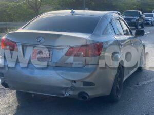Dialuna atardi a drenta informe di un accidente cu hend herida na Hooiberg, mesora a dirigi tanto polis como ambulans na e sitio. Na yegada di e patruya a bin compronde cu e chauffeur a brake mucho laat y a bay dal tras di e Lexus. Debi na e impacto a hiba e muchanan herida den auto particular y a cancela e ambulans.