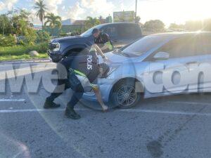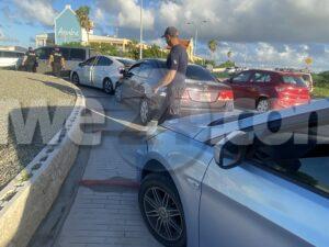 Diaranson mainta a drenta informe di un accidente na e rotonde Cumana, mesora a dirigi un patruya na e sitio. Na caminda pa e sitio a drenta informe di un otro accidente na e mesun rotonde y tin trafico blokia te na Santa Cruz. Na yegada di e patruya a cuminsa hala e autonan pa asina libera e camindanan pa fluho di e trafico. E prome accidente ta un Hyundai Staria cu tabata bini for di Santa Cruz cu a subi e rotonde sin a duna preferencia na e Hyundai Accent cu tabata bini for di airport y nan a dal den otro. E otro accidente a sosode ora un Honda a bay dal tras di un Toyota Prius cu a kita pa e accidente y un honda a bay dal tras di dje. Despues di un par di minuut a sosode otro accidenta mas dilanti di CMart afortunadamente ningun hende a resulta herida.