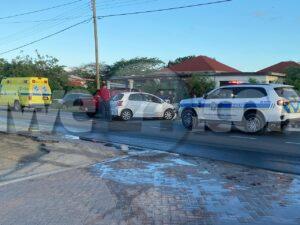 Diadomingo mainta a drenta informe di un accidente cu hende herida dilanti di Centro di Bario Tanki Leendert, mesora a dirigi tanto polis como ambulans na e sitio. Na yegada di e patruya a bin compronde cu aki ta trata di un accidente unda pa un motibo of otro e auto Toyota Vitz a perde control bay banda robes di caminda dal acera y bay dal frontal riba un Chevrolet Montana. Debi na e impacto e chauffeur di e Vitz a resulta herida na yegada di e ambulans nan a atende y transporte pa hospital.