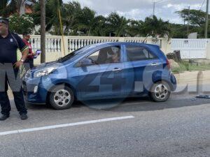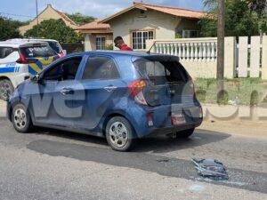 Diabierna mainta a drenta informe di un accidente cu hende herida na Tanki Leendert, mesora a dirigi tanto polis como ambulans na e sitio. Na yegada di e patruya a bin compronde cu aki ta trata di un accidente unda un Nissan Frontier no a regula su velocidad ni a mantene distancia a bay dal tras di e Kia Picanto. Debi na e impacto e dama chauffeur a resulta levemente herida. Na yegada di e ambulans e paramedico a atende y a pidi un ambulans mes bini na e sitio pa mas atencion medico na hospital.