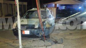 Diadomingo madruga a drenta informe di un accidente na e entrada di Dr. Henriquezstraat, mesora a dirigi un patruya na e sitio. Na yegada di e patruya a bin compronde cu aki ta trata di un accidente unda cu un chauffeur burachi coriendo un Hyundai a tuma e birada mucho hancho subi acera y bay dal riba un palo di lus. Polis a pone supla y a detene pa a core auto burachi y causa accidente.