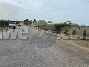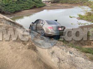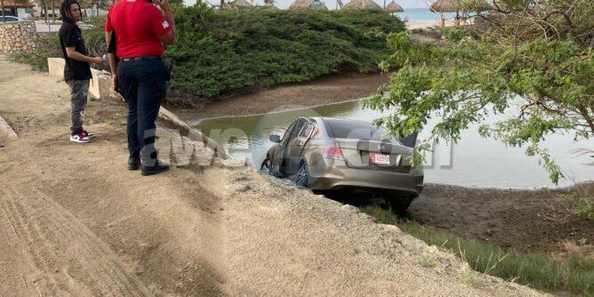Diaranson mainta a drenta informe di un incidente na Arashi, mesora a dirigi un patruya na e sitio. Na yegada di e patruya a bin compronde maske e chauffeur no kier admiti cu ta drift ela bay drift perde control y a bay cay den e rooi y e auto a keda pega. Afortunadamente ningun hende a resulta herida.