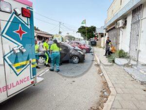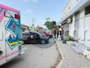 Diaranson atardi a drenta informe di un accidente cu hende herida panort di e rotonde banda di ex-Piet’s Soda Fountain, mesora a dirigi tanto polis como ambulans na e sitio. Na yegada di e patruya a bin compronde cu e chauffeur burachi coriendo e Hyundai i10 yegando e rotonde for di Pontona kita bay na man robes y a bay dal frontal riba e Chevrolet Spark contrario. Debi na e impacto ambos dama den e Spark a resulta herida. Na yegada di e ambulans nan a atende e victimanan y a transporta nan pa hospital. Polis a detene e chauffeur burachi cu a ocasiona e accidente frontal aki.
