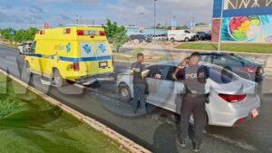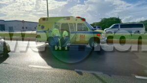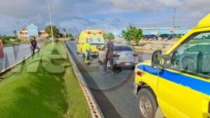 Diasabra atardi a drenta informe di un un accidente cu hende herida dilanti di C-Mart na E.J.”Watty” Vos blvd. mesora a dirigi tanto polis como ambulans na e sitio. Na yegada di e patruya a bin compronde cu un chauffeur a haya ta bon di bay core tras di un ambulans bayendo pa un emergencia y yegando na e rotonde e ambulans mester a brake pa trafico pero e auto cu tabata siguiendo tras di e ambulans si no a logra para y a bay dal tras di e ambulans. Debi na e fuerte impacto e paramediconan di ambulans a resulta herida. Polis a test e chauffeur pero esaki no tabata bao influencia di alcohol. Na yegada di nan colega nan a atende nan y a transporta nan pa hospital.