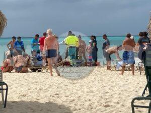 Dialuna merdia a drenta informe di cu tin un incidente a pasa cu hende herida dilanti La Cabana unda primeramente ta bisa cu ta un incidente cu waverunner, mesora a dirigi tanto polis como ambulans na e sitio. Na yegada di e patruya a bin compronde cu aki no ta trata di un incidente cu waverunner pero cu ta un turista cu a drenta e lama bruto y esaki a heride. Na yegada di e ambulans a bin trata un persona adulto cu a drenta e lama toch aunke e banderanan cora ta poni e olanan a dal e bolter e y e no por a move ni su mannan ni su pianan. Na e mesun momento ey un mucha cu tambe a drenta lama bruto tambe a ser lesiona pa cual a pidi ayudo di un otro ambulans. Mientrastanto a atende e victima adulto y a pone den ambulans. Na yegada di e otro ambulans nan a atende e mucha muher tambe turista cu a resulta herida y a bay tambe cun’e pa hospital.