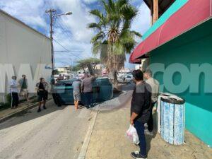 Dialuna atardi a drenta informe di un accidente cu hende herida na e crusada di Middenweg y Waterweg. Mesora a dirigi tanto polis como ambulans na e sitio. Na yegada di e patruya a bin compronde cu un Nissan Sentra lo no a duna preferencia na e Daihatsu Terios y nan a accidente te cu e Daihatsu a kentel. Na yegada di e ambulans nan a atende cu e dama cu tabata den e Daihatsu cu a resulta levemente herida.