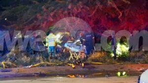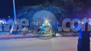 Diasabra madruga a drenta informe di un accidente basta serio banda di Carnival Village, mesora a dirigi tanto polis como ambulans na e sitio. Na yegada di e patruya a bin compronde cu aki lo ta trata di un caso di persecucion cu posibel tiramento cu arma di candela. E chauffeur den e auto lo a perde control bay dal riba un palo di lus y yn mata di kwihi y a keda pega den e ruina di e auto te cu mester a solicita e equipo di rescate di bombero pa asina libera e victima. Manera a logra libera e victima a transporte cu urgencia pa hospital mientras investigacionnan a sigui na e sitio. Durante e investigacionnan cu a sigui a logra haya marcanan di tiro di arma di candela riba e auto. Polis a sigui cu su investigacionnan. (Nos lo sigui informa ……. keda pendiente!)