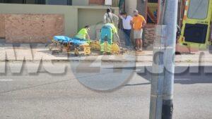 Diasabra mainta a drenta informe si xu un persona trahando den construccion a cay for di trapi den Zoutmanstraat, mesora a dirigi tanto polis como ambulans na e sitio. Na yegada di e patruya a bin compronde cu e persona haciendo trabao di construccion na un dado momento piedranan a bin abao y a benta e persona abao. Na yegada di e ambulans e persona no por a move. Cu cuidao e ambulans a lanta e homber y a pone den ambulans. Ela ser atendi y transporta pa hospital.
