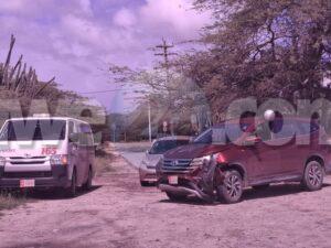 Diaranson merdia a drenta informe di un accidente na rotonde Mahuma, mesora a dirigi un patruya na e sitio. Na yegada di e patruya a bin compronde cu aki ta trata di un accidente unda cu un auto a subi e rotonde net ora cu e otro auto ta riba e rotonde caba. Afortunadamente ningun hende a resulta herida.
