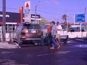 Diahuebs mainta a drenta informe di un accidente den parkinglot si C.M.B. na Santa Cruz, mesora a dirigi un patruya na e sitio. Na yegada di e patruya a bin compronde cu aki ta trata di un accidente ora un chauffeur a bay purba parkeer pero e chauffeur a calcula malo y a raspa e otro auto na banda.