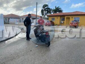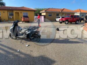 Diahuebs mainta a drenta informe di un accidente cu hende herida, mesora a dirigi un patruya na e sitio. Na yegada di e patruya a bin compronde cu aki ta trata di un accidente unda un Jeep di huur cu un chauffeur local a bay tuma e bocht mucho tempran y a bay dal riba un scooter di bateria y a dal e bente abao lagando e motociclista herida. E victima a nenga atencion medico ya cu e heridanan segun e ta leve.