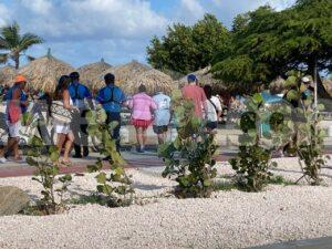 Diahuebs mainta un turista di edad a dal abao na Eagle Beach, mesora e personal cu percura pa seguridad na e beach a bay brinda asistencia pero e caballero a lanta di su mes y su famia a compañe.