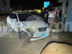 Diasabra madruga a drenta informe di un accidente na crusada Paardenbaaistraat cu L.G. Smith Blvd., mesora a dirigi un patruya na e sitio. Na yegada di e patruya a bin compronde cu un chauffeur bao influencia a bay crusa e caminda y un auto bayendo pabao a dal den dje y a mand’e bay dal borchi trafico hera pega esaki riba un kiosco. Ora polis a test e chauffeur ela surpasa e limite di alcohol den su curpa. Mesora polis a detene. Polis a nota cu e auto tabata tin sla tur caminda riba e auto pero e chauffeur a bisa polis cu esakinan ta bieuw. Afortunadamente ningun hende a resulta herida.
