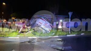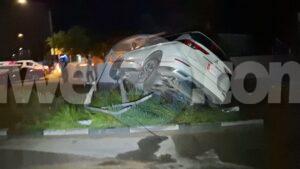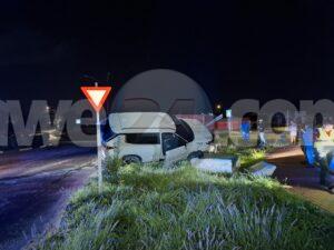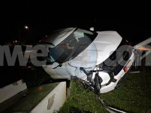 Dialuna maduga a drenta informe di un accidente cu hende herida na e rotonde Santa Helenastraat, mesora a dirigi tanto polis como ambulans na e sitio. Na yegada di e patruya a bin compronde cu aki ta trata di un accidente unda e chauffeur di un suv casi nobo biniendo cu velocidad halto a perde control aubi e rotonde dal kashi coriente y un palo di lus. Debi na e impacto e chauffeur a resulta herida. Na yegada di e ambulans nan a atende e victima. E auto mes a keda basta kibra y cu takelwagen mester a bahe for di e rotonde.
