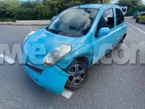 Diasabra atardi a drenta informe di un accidente na e crusada di Pos Abao, mesora a dirigi un patruya na e sitio. Na yegada di e patruya a bin compronde cu aki ta trata di un accidente unda un Nissan March biniendo for di Pos Abao no a duna preferencia na e Hyundai Accent bayendo pariba direccion Hato y nan a dal otro. E Nissan March su wiel dilanti banda robes a keda kibra y e auto no por a sigui core y un chauffeur no tin rijbewijs mes.