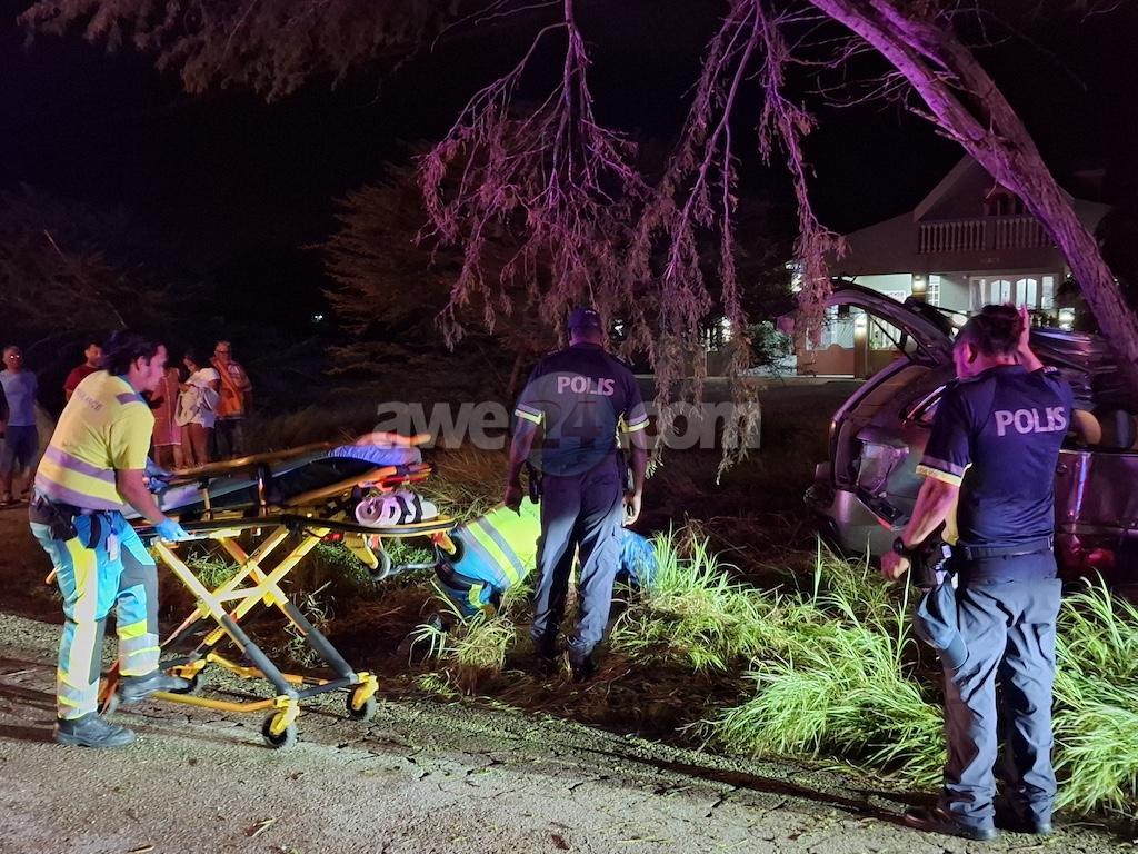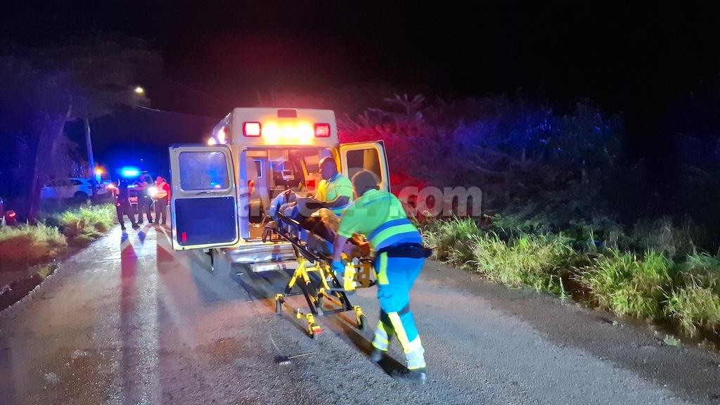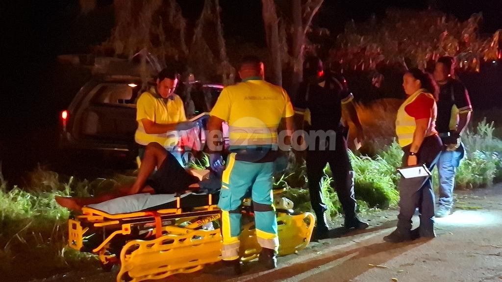 Diasabra anochi a drenta informe di un accidente cu hende herida na Alto Vista. Mesora a dirigi tanto polis como ambulans na e sitio. Na yegada di e patruya a bin compronde cu aki ta trata di un accidente unda SUV maneha pa un chauffeur hoben lo a slip riba caminda muha, perde control y bai dal den un mata di kwihi. E impacto tabata basta fuerte. A bin compronde cu e auto lo no tabata tin ningun papel na ordo. Y e nummerplaat lo tabata di un otro vehiculo. Na yegada di e ambulans nan a atende cu e victima cu tabata keha di hopi dolor. Polis a tuma datos di e accidente aki.
