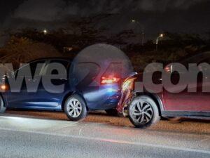 Dialuna anochi a drenta informe di un accidente banda di ex-House of Cheng na Sasakiweg, mesora a dirigi un patruya na e sitio. Na yegada di e patruya a bin compronde cu aki ta trata di un accidente unda cu e chauffeur di un s.u.v. no a regula su velocidad ni a mantene distancia a bay dal tras di e auto su dilanti. Afortunadamente ningun hende a resulta herida.