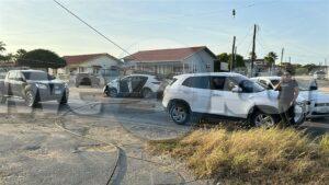 Diahuebs mainta a drenta informe di un accidente cu hende herida na Meiveld, mesora a dirigi tanto polis como ambulans na e sitio. Na yegada di e patruya a bin compronde cu aki ta trata di un accidente unda cu un Mitsubishi Lancer no a duna preferencia na un Kia Sportage y nan a dal den otro e fuerte impacto aki a pone cu e Mitsubishi Lancer aki a bira mas di 180 grado mientras a desvia e Kia Sportage baha caminda y bay dal stret riba un palo di lus cu transformer riba dje. E impacto riba e palo di lus a pone cu esaki a bay cay riba e Sportage lagando e chauffeur di esaki cu otro 2 mucha mas den e auto herida. Na yegada di e ambulans nan a atende e 3 victimanan aki na e sitio mes. Den e accidente aki tabata tin 2 autonan mas envolvi pero esakinan tabata wayanan di coriente a cay riba nan causa daño.
