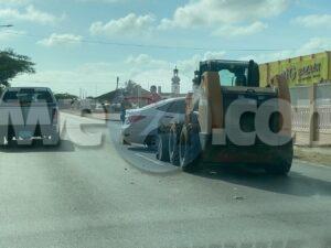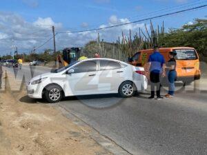 Diabierna mainta a drenta informe di un accidente dilanti Big Bazaar na Tanki Leendert, mesora a dirigi un patruya na e sitio. Na yegada di e patruya a bin compronde cu aki ta trata di un accidente pa motibo di un deha di no a sera e caminda un Bobcat den su maniobranan serando e canal coba cu asfalt sin a mira cu auto ta bin a bira dal den banda di e auto causando un daño na e auto y pusha esaki den banda. Afortunadamente ningun hende a resulta herida.