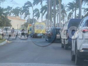 Dialuna mainta a drenta informe di cu un turista a sak den otro na un cancha di tennis na Palm Beach, mesora a dirigi tanto polis como 2 ambulans na e sitio. Na yegada di e patruya ya caba e victima a ser hinca den ambulans y tabata ser transporta pa hospital. Mientras un otro ambulans a avisa e patruya cu ta un turista masculino cu tabata hayando un atake di curason y a ser hillba caba den e prome ambulans.