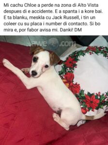 tambe a haya informe cu lo tabata tin un cacho Jack Russel den e auto y di susto lo a core bai. Ta pidi si bo por a mira a cacho aki please yama +297 6418868