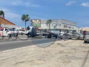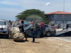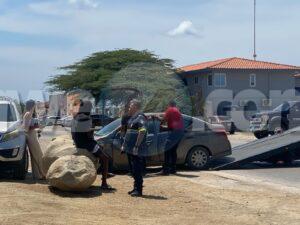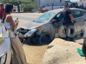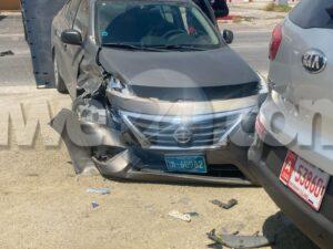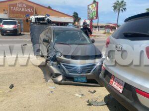 Diasabra merdia a drenta informe di un accidente dilanti di New Tarabana Foodstore, mesora a dirigi un patruya na e sitio. Na yegada di e patruya a bin compronde cu aki ta trata di un accidente entre 3 auto unda un Honda Fit a bay bira y e Nissan Versa su tras no a mantene distancia ni a regula su velocidad a bay dal fuertemente tras di e Honda Fit y e versa a kita bay dal un Kia Sportage staciona. Aunke e impacto tabata fuerte y tur 3 auto a ricibi basta daño cu ningun por a core, Afortunadamente ningun hende a resulta herida.