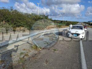 Dialuna atardi a drenta informe di un accidente na e “Green Corridor” riba e caminda di “Drive Inn” pa Ser’i Teishi, mesora a dirigi un patruya na e sitio. Na yegada di e patruya a bin compronde cu e chauffeur di un Toyota RAV4 lo a perde control y a bay dal den banda di e vangrail. Afortunadamente ningun hende a resulta herida.