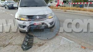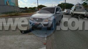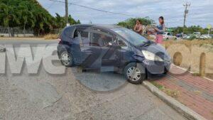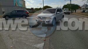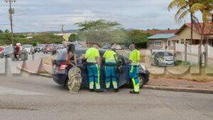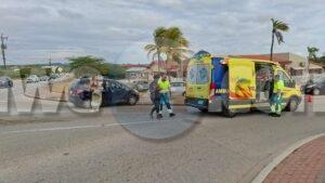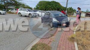 Diaranson atardi a drenta informe di un accidente cu hende herida na e crusada banda di e cellsite di Setar, mesora a dirigi tanto polis como ambulans na e sitio. Na yegada di e patruya a bin compronde cu aki ta trata di un accidente unda cu un Honda Fit a bira dilanti un Suzuki Vitara sin dun’e preferencia y e Vitara a bay dal den su banda drechi di su RHD. Debi na e impacto aki e chauffeur a resulta herida. Na yegada di e ambulans mesora a atende e victima.
