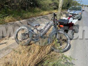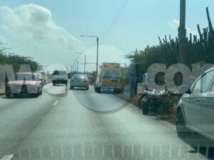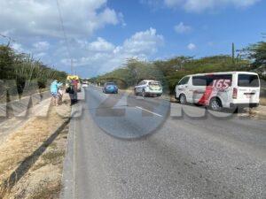 Diaranson mainta a drenta informe di un accidente cu hende herida pabao di rotonde Hato, mesora a dirigi polis y ambulans pa e sitio. Casualmente un patruya y tambe ambulans tabata pasando y nan a atende cu e accidente aki. A bin compronde cu aki un ciclista riba bicicleta electrico a keda pusha dor di biento riba un quadracer riba caminda mandando esakinan bay dal den banda di un auto den trafico contrario. Debi na e impacto e ciclista a wordo tira for di su bicicleta y a resulta herida. Tambe e manehador di e quad a resulta levemente herida debi na e impacto na banda di e auto. Ambulans a atende ambos herido na e sitio mes.