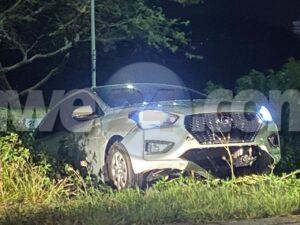 Diasabra madruga a drenta informe di un accidente riba Sasakiweg, mesora a dirigi un patruya na e sitio. Na yegada di e patruya a bin compronde cu aki ta trata di un accidente hit & run unda cu un otro auto a pasa dal e auto pone perde control y a bay cay den e plas di awa meymey di e camindanan y a sigui bay. Polis a tuma datosnan di locual a sosode y ta investigando e caso aki pa asina haya e auto cu a sigui core bay pa pone para responsabel.