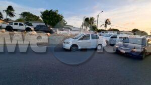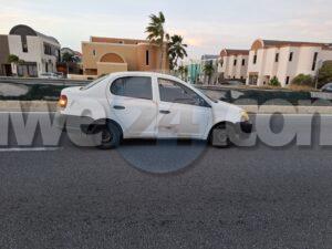 Diasabra atardi a drenta informe di un accidente riba E.J.”Watty” Vos blvd., mesora a dirigi un patruya na e sitio. Na yegada di e patruya a bin compronde cu aki ta trata di un accidente entre 2 Toyota Yaris cu a dal banda di otro unda tabata tin declaracionnan contradictorio y trafico a pega ora un truck cu trailer su tras a yega y no por a pasa. Esaki a crea un fila basta largo unda autonan apenas por a pasa.