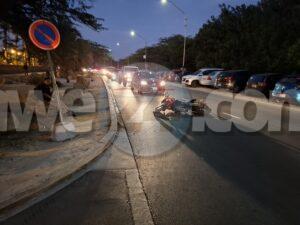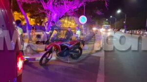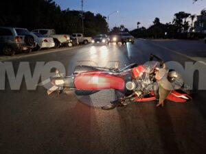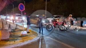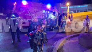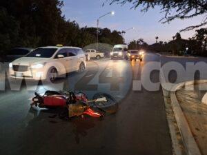 Diasabra anochi a drenta informe di un accidente cu hende herida dilanti Riu Palace, mesora a dirigi tanto polis como ambulans na e sitio. Na yegada di e patruya a bin compronde cu aki ta trata di un accidente unda cu un s.u.v. ta bay bira na man robes mientras un motociclista sin lus y sin helm ta bay pasa e auto y e motociclista a bay dal na e porta di e auto y a dal abao. E motociclista tabata keha di dolor na su man y pia. Na yegada di e ambulans nan a atende e victima.