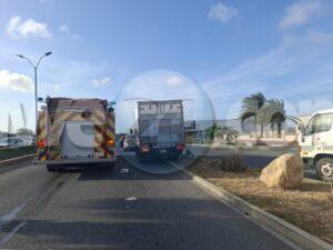Accidente ora truck di bombero bayendo cu emergencia pa un candela mester a pasa memey di un truck cu un auto