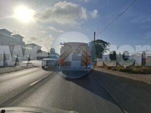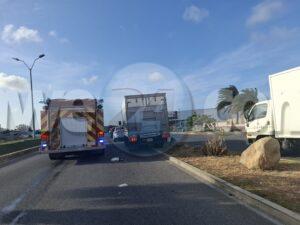 Diamars atardi a drenta informe di un accidente dilanti Cmart na E.J. “Watty” Vos Blvd., mesora a dirigi un patruya na e sitio. Na caminda pa e sitio polis a ser avisa cu e truck a sigui bay pa e emergencia di un candela na Tanki Leendert. Unabes cu bomberonan tabata yegando e sitio a compronde cu e candela ya a termina y e por regresa na e sitio di accidente. Hunto cu polis a bin compronde cu e truck di bombero tabata purbando pasa memey di autonan cu truck pero debi cu e truck di bombero ta mucho hancho su spiel a dal na e truck y esaki a kita cay kibra. E otro truck despues di cu bomberonan a sigui e truck tambe a sigui. Afortunadamente ningun hende a resulta herida.