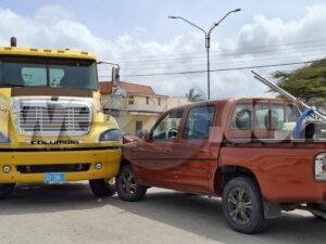 Diaranson merdia a drenta informe di un accidente na Santa Cruz dilanti 88 food Mart. Mesora a dirigi un patruya na e sitio. Na yegada di e patruya a bin compronde cu chauffeur di un pick-up oranje lo no a wak e truck geel y a bai dal den dje. Afortunadamente ningun persona a resulta herida. A tuma datos di e accidente aki.