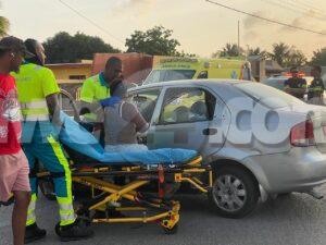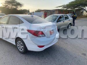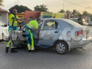 Diaranson atardi a drenta informe di un accidente cu hende herida na Tanki Leendert, mesora a dirigi tanto polis como ambulans na e sitio. Na yegada di e patruya a bin compronde cu aki ta trata di un accidente pa falta di preferencia unda e dama chauffeur di e Chevrolet Aveo no a para pa duna preferencia na e Hyundai Accent ni cu esaki a purba desvia pa e impacto halando na man robes. Debi na e impacto e dama chauffeur di e Aveo a resulta herida y tabata keha di dolor. Na yegada di e ambulans nan a atende e dama y a transporte pa hospital.