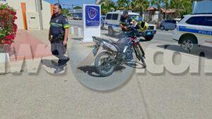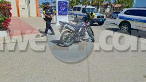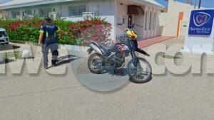 Diabierna atardi a cuminsa un problema entre hobennan na Santa Cruz, mesora a dirigi patruyanan na e sitio. Ora polis a yega e motociclista a core bay pero un otro patruya a logra par’e. Ora a bay controla e papelnan di e motociclista a bin nota un cuchiu mesora apolis a detene pa posesion di un arma y a confisca e motorcycle.