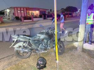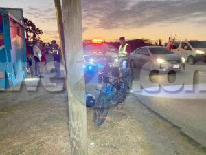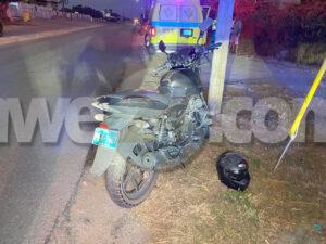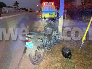 Diadomingo atardi a drenta informe di un accidente cu hende herida na Bloemond, mesora a dirigi tanto polis como ambulans na e sitio. Na yegada di e patruya a bin compronde cu aki ta trata di un accidente unda un auto Nissan March biniendo di pariba a bay bira na man robes pero e no a duna preferencia na un motociclista di direccion contrario y esaki a desvia dal abao sin dal riba e auto. Na yegada di e ambulans nan a atende e victima na e sitio mes.